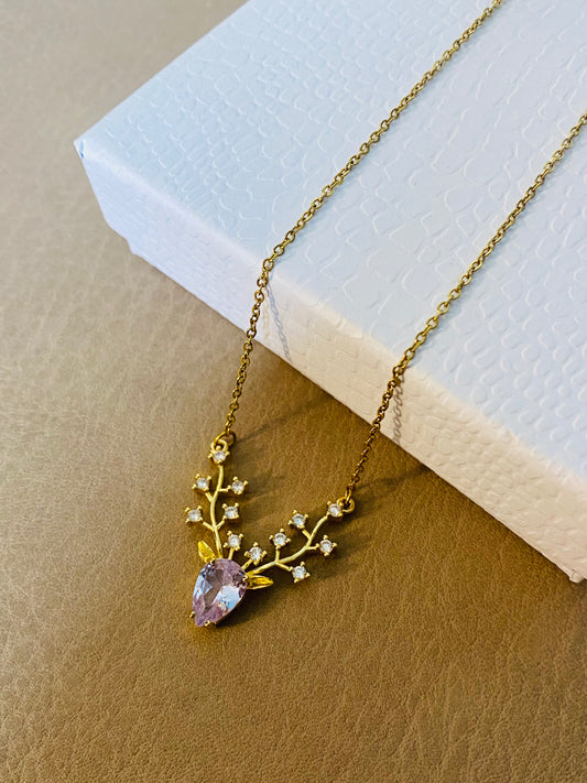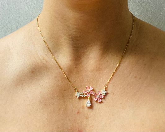 Crystal Pink Flowers Necklace 18k Gold Plated