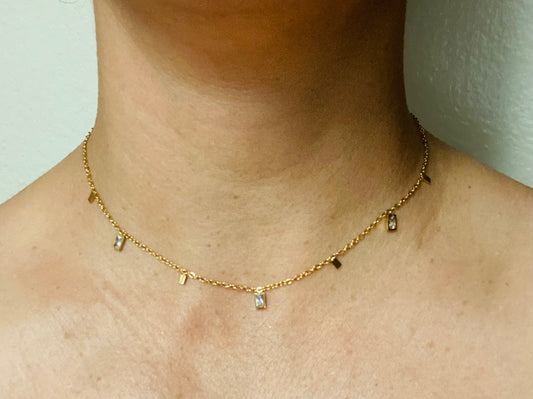 Delicate Crystal Charms 18k Gold Plated A Style Necklace Tarnish Free